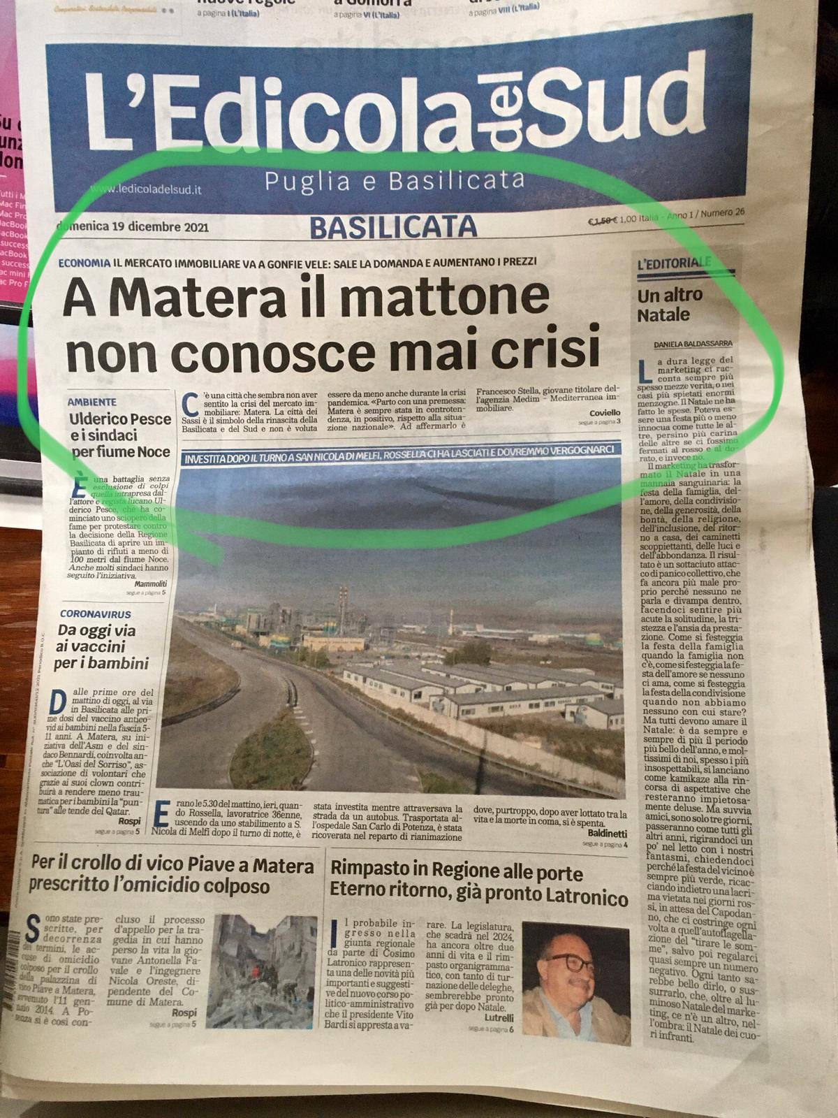 Dicembre 2021 - Intervista in prima pagina su L'Edicola del Sud - Pagina 1